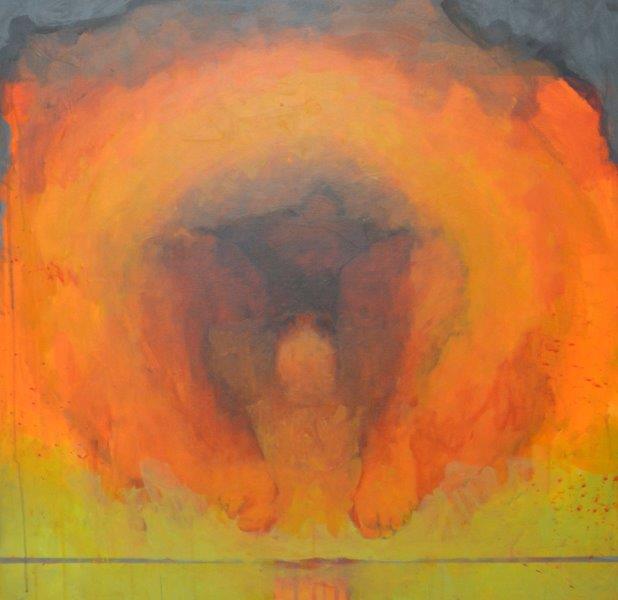 Dvojnosti med krogom in kvadratom, fizičnim in duhovnim, zemeljskim in nadzemskim, podpirajo likovni kontrasti. Abstrakten, nebeški prostor slikarka mehko modelira s potezami, ki posnemajo plapolanje ognja. Prevladujoče rumene svetlobe pa ostro in razločno uokvirjajo hladni odtenki. Kontrasti, ki poudarjajo intenzivno žarenje osrednje svetlobe, hkrati prostorsko definirajo in prizemljijo slikarsko kompozicijo.