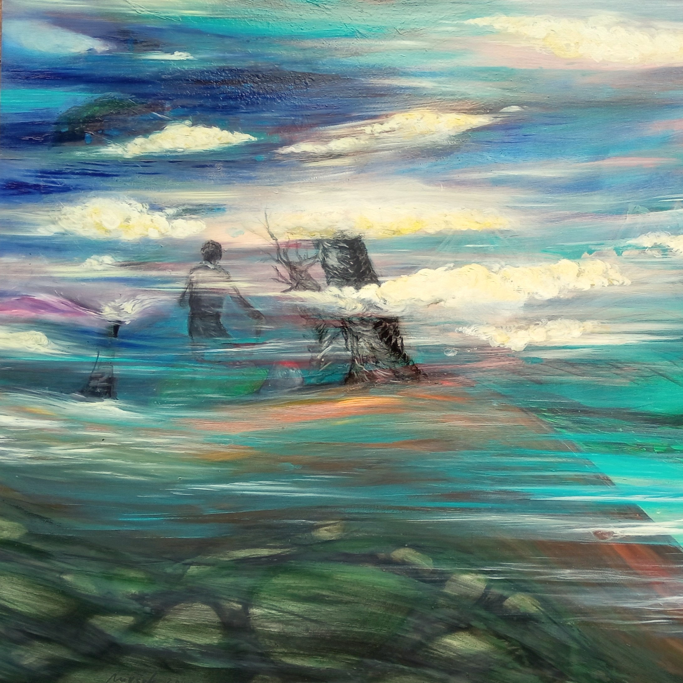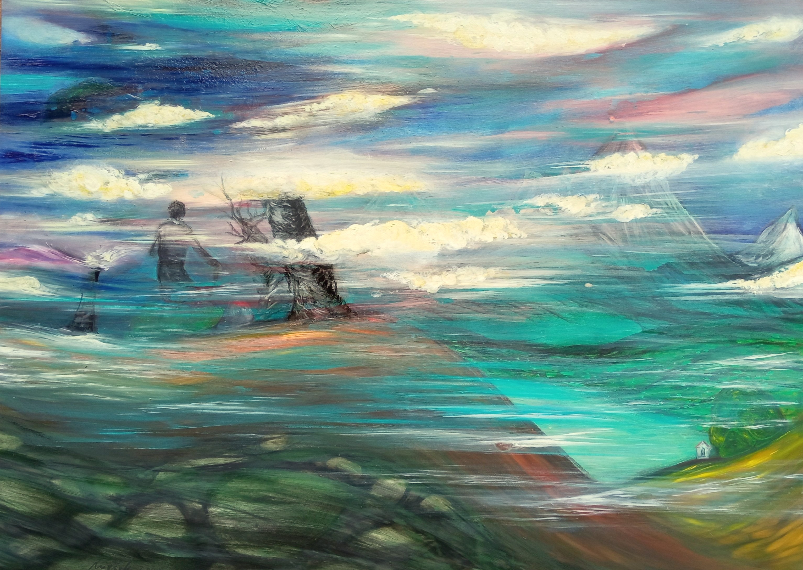 Andrej Mivšek je v preteklosti svoja dela razstavljal tako na samostojnih kot na skupinskih razstavah, v cerkvi Device Marije pa nam predstavlja pretežno novejša dela. Likovni izraz njegovih slik se v tem novem ciklu kaže v odmiku, čeprav ne popolnem, od abstrakcije in abstrahiranih form iz prejšnjih obdobij in prevzema konkretno formo. V prostoru se zdaj raztezajo dinamične podobe domišljijskih, za umetnika tipično slovenskih krajin, v katerih najdemo tudi kakšno cerkvico ali kapelico, ki je sicer neznatna v mogočnosti narave, vendar tvori dialog s preteklostjo, s koreninami in tradicijo. Konkretnejšo vlogo je dobila tudi človeška figura, včasih je komaj zaznavna, izgubljena v megli ali veličini narave, na nekaterih delih pa je postavljena v prvi plan slike.